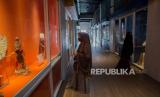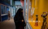 Pengunjung mengamati koleksi wayang di Museum Wayang, Jakarta, Jumat (19/6). Memasuki masa transisi PSBB DKI Jakarta sejumlah museum diperbolehkan buka kembali secara bertahap pada 8 Juni hingga 2 Juli 2020 namun kondisi museum masih sepi pengunjung (FOTO : Republika/Thoudy Badai)