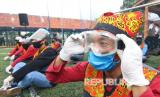 Pemandu wisata mengikuti acara penyerahan sertifikat Guide Ijen di Licin, Banyuwangi, Jawa Timur, Jumat (19/6/2020). Sebanyak 91 pemandu wisata Taman Wisata Alam Kawah Ijen yang telah terseleksi melalui pelatihan terkait pariwisata dan protokol kesehatan COVID-19, mendapat sertifikat untuk digunakan sebagai standar pelayanan pariwisata di era tatanan normal baru. (FOTO : Antara/Budi Candra Setya)