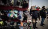 Pedagang menjual kaca mata di kapal penyeberangan di Pelabuhan Kali Adem, Jakarta Utara, Sabtu (20/6). Penyeberangan menuju Kepulauan Seribu yang sebelumnya diprioritaskan untuk petugas kesehatan, anggota TNI/Polri, aparatur sipil negara, dan warga Kepulauan Seribu kini mulai dibuka kembali untuk akses wisatawan dengan tetap menerapkan protokol kesehatan (FOTO : Republika/Thoudy Badai)