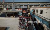 REPUBLIKA.CO.ID, JAKARTA -- Sejumlah penumpang menaiki kapal penyeberangan di Pelabuhan Kali Adem, Jakarta Utara, Sabtu (20/6).