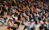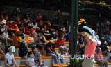 Sejumlah pengunjung menggunakan masker dan duduk dengan jarak fisik saat menyaksikan pertunjukan Various Animals Show di Taman Safari Indonesia (TSI), Cisarua, Kabupaten Bogor, Jawa Barat, Sabtu (20/6/2020). Setelah lebih dari dua bulan ditutup akibat pandemi COVID 19, TSI Bogor kembali dibuka untuk umum dengan menerapkan protokol kesehatan dalam masa transisi Pembatasan Sosial Berskala Besar (PSBB) di wilayah Kabupaten Bogor. (FOTO : Antara/Arif Firmansyah)