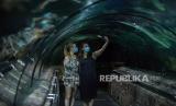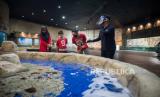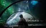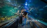 Sejumlah pengunjung melihat koleksi ikan di unit rekreasi Sea World kawasan Ancol, Jakarta, Sabtu (20/6). Taman Impian Jaya Ancol kembali dibuka setelah ditutup hampir 2 bulan akibat pandemi COVID-19 (FOTO : Republika/Thoudy Badai)