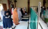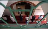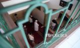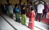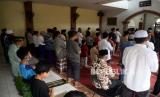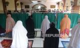 Warga dengan menerapkan jaga jarak melaksanakan sholat sunnah gerhana matahari di Masjid Daarul Hikmah, Pamulang, Tangerang Selatan, Banten, Ahad (21/6). Fenomena Gerhana Matahari Cincin kembali terjadi pada Ahad (21/6) dan akan melitas di 31 provinsi di Indonesia (FOTO : Republika/Prayogi)