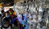 Pengunjung memilih ikan hias di Pasar Ikan Hias Muara, Jalan Peta, Kota Bandung, Ahad (21/6). Sejak dilonggarkannya aturan pembatasan sosial, sentra ikan hias terbesar di Kota Bandung ini padat pengunjung (FOTO : Edi Yusuf/Republika)