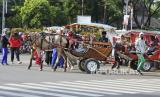 Andong wisata Jogja beradaptasi dengan tatanan baru menggunakan sekat plastik..