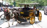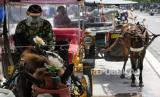 Sang kusir juga ikut menyesuaikan diri dengan aturan protokol kesehatan pandemi covid dengan mengenakan masker dan pelindung wajah.