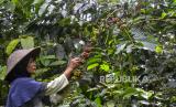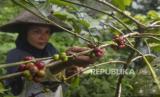REPUBLIKA.CO.ID, TASIKMALAYA -- Petani memetik kopi robusta di Kawasan Kaki Gunung Galunggung, Kampung Ciakar, Kabupaten Tasikmalaya, Jawa Barat, Minggu (21/6).