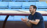Manager Chelsea Frank Lampard memberi semangat kepada timnya dalam laga pekan ke-30 Liga Primer Inggris. Chelsea mengalahkan Aston Villa 2-1, Ahad (21/6). (FOTO : JUSTIN TALLIS/POOL VIA REUTERS)