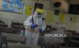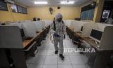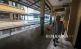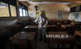 REPUBLIKA.CO.ID, JAKARTA -- Petugas Palang Merah Indonesia (PMI) Jakarta Pusat menyemprotkan cairan disinfektan di SMP Negeri 17 Jakarta, Sawah Besar, Jakarta, Senin (22/6).