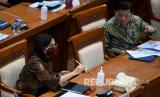 REPUBLIKA.CO.ID, JAKARTA -- Menteri Keuangan Sri Mulyani bersama Menteri Perencanaan Pembangunan Nasional/Kepala Bappenas Suharso Monoarfa menyampaikan paparan saat rapat kerja bersama Komisi XI DPR di Kompleks Parlemen Senayan, Jakarta, Senin (22/6/2020).