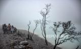 REPUBLIKA.CO.ID, BANDUNG -- Pengunjung berada di kawasan Taman Wisata Alam Kawah Putih, Kabupaten Bandung, Senin (22/6).