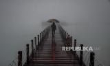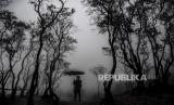 Pengunjung berada di kawasan Taman Wisata Alam Kawah Putih, Kabupaten Bandung, Senin (22/6). Meski telah dibuka untuk wisatawan dengan menerapkan protokol kesehatan, kawasan wisata tersebut sepi pengunjung. Foto: Abdan Syakura/Republika (FOTO : ABDAN SYAKURA/REPUBLIKA)