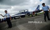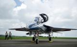 Jet latih tempur Advanced Jet Trainer (AJT) Yung Yin dalam posisi taxi di runway bandara kota Taichung, Taiwan Senin (22/6). Pesawat jet tempur buatan Taiwan ini akan memperkuat skuadron jet negara pulau ini. (FOTO : EPA-EFE/RITCHIE B. TONGO)