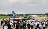 Warga befoto di depan jet latih tempur Advanced Jet Trainer (AJT) Yung Yin di bandara kota Taichung, Taiwan Senin (22/6). Pesawat jet tempur buatan Taiwan ini akan memperkuat skuadron jet negara pulau ini. (FOTO : EPA-EFE/RITCHIE B. TONGO)