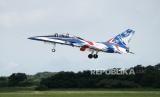 Jet latih tempur Advanced Jet Trainer (AJT) Yung Yin lepas landas dari runway bandara kota Taichung, Taiwan Senin (22/6). Pesawat jet tempur buatan Taiwan ini akan memperkuat skuadron jet negara pulau ini. (FOTO : EPA-EFE/RITCHIE B. TONGO)