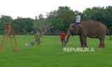 Gajah peliharaan Taman Wisata Candi (TWC) Borobudur Zella bersiap belajar melukis di taman Lumbini, Borobudur, Magelang, Jawa Tengah. (FOTO : ANIS EFIZUDIN/ANTARAFOTO)