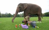 Dibawah bimbingan 'Mahout' atau pawang gajah Maidi (47) dan Andi Kurniawan (29), Zella belajar menggunakan kuas dan cat air untuk membuat lukisan di taman Lumbini Kompleks TWC Borobudur.