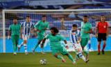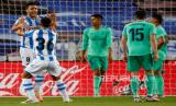 REPUBLIKA.CO.ID, SAN SEBASTIAN -- Real Madrid akhirnya berhasil menggeser seteru abadinya, Barcelona, di puncak klasemen sementara setelah memetik kemenangan di kandang Real Sociedad pada jornada ke-30 La Liga Spanyol, Senin (22/16) dini hari WIB. Dalam laga yang digelar di Stadion Anoeta tersebut, Madrid membukukan kemenangan lewat gol Sergio Ramos dan Karim Benzema. Sementara itu, tim tuan rumah sempat membalas lewat torehan Mikel Merino.