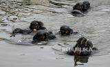 REPUBLIKA.CO.ID, JAKARTA -- Prajurit Satuan Komando Pasukan Katak (Sat Kopaska) TNI AL melakukan infiltrasi ke garis depan penyerbuan di Kompleks Dermaga Pondok Dayung Koarmada I, Jakarta, Selasa (23/6/2020).