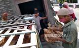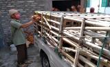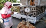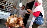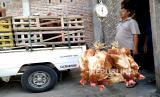 REPUBLIKA.CO.ID,YOGYAKARTA -- Pedagang ayam menimbang bobot ayam merah untuk pembeli di Bantul, Yogyakarta, Selasa (23/6).
