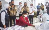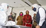 REPUBLIKA.CO.ID, KARAWANG -- Menteri Ketenagakerjaan Ida Fauziyah meninjau pelaksanaan tes diagnostik cepat COVID-19 untuk buruh di kawasan Suryacipta, Karawang, Jawa Barat, Selasa (23/6/2020).