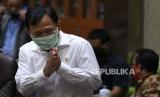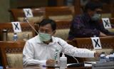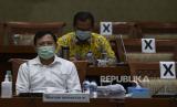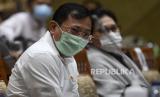 REPUBLIKA.CO.ID, JAKARTA -- Menteri Kesehatan Terawan Agus Putranto (kiri) mengikuti rapat kerja bersama Komisi IX DPR di Kompleks Parlemen Senayan, Jakarta, Selasa (23/6).