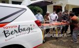 Direktur Administrasi, Korporasi dan Hubungan Eksternal PT Toyota Motor Manufacturing Indonesia (TMMIN) Bob Azam (ketiga kiri) didampingi Pimpinan Ponpes An Nawawi Tanara KH. Ahmad Syauqi (kedua kiri) melihat Kijang Innova Ambulance beserta perlengkapannya yang merupakan bagian dari donasi penanggulangan COVID-19 Toyota Indonesia untuk Ponpes An Nawawi Tanara di Banten, Selasa (23/6/2020). Selain dua unit Kijang Innova Ambulance, donasi yang diserahkan kepada itu ponpes itu berupa 2.250 masker, (FOTO : ANTARA/HO)