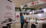 Seorang Sales Produk LG merapihkan jajaran produk perangkat elektronik rumah tangga di sebuah pusat perbelanjaan elektronik di Jakarta, Senin (22/6). Memasuki masa New Normal yang mulai berlaku pada bereapa daerah di Indonesia LG mengadakan Kampanye besar “LG Bersama Anda” yaitu memberikan asuransi Covid-19 kepada seluruh pembeli produk perangkat elektronik rumah tangga. Foto: darmawan / republika. (FOTO : REPUBLIKA)