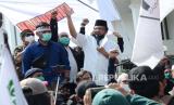 KH Athian Ali M Dai menyampaikan orasi saat aksi menolak Rancangan Undang-Undang Haluan Ideologi Pancasila (RUU HIP) yang digelar Forum Ormas Islam (Formasi) di depan Gedung DPRD Jawa Barat, Jalan Diponegoro, Kota Bandung, Rabu (24/6). Aksi tersebut menolak semua bentuk aturan perundangan yang mengarah kepada komunisme, menghentikan pembahasan dan memastikan RUU HIP tidak akan menjadi Undang-undang, mendukung maklumat MUI dan menangkap inisiator panitia kerja (panja) RUU HIP dan dimejahijaukan. (FOTO : Edi Yusuf/Republika)