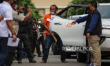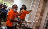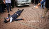 REPUBLIKA.CO.ID, TANGERANG -- Tersangka yang juga anak buah John Kei memperagakan reka ulang penyerangan di Perumahan Green Lake City, Kota Tangerang, Banten, Rabu (24/6).