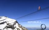REPUBLIKA.CO.ID, SWISS -- Sejumlah pemain akrobat dan penari menampilkan aksi menantang maut di Les Diablerets, kawasan Pegunungan Alpen, Swiss, Selasa (23/6). Aksi penuh keberanian tersebut dilakukan untuk memeriahkan gelaran Glacier 3000 Air Show, sebuah acara yang menandai pembukaan kembali tempat wisata di pegunungan Alpen ditengah pelonggaran kebijakan lockdown untuk mencegah penyebaran pandemi Covid-19 di Swiss.