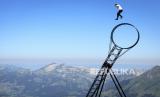 Pemain akrobat Swiss Freddy Nock menjaga keseimbangan diri saat beraksi dengan sepeda di atas kabel di ketinggian 3000 meter dalam acara Glacier 3000 Air Show di Les Diablerets, Swiss (23/6). (FOTO : EPA-EFE/LAURENT GILLIERON)