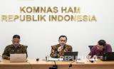 REPUBLIKA.CO.ID, JAKARTA -- Komnas HAM memberikan keterangan pers terkait Rancangan Peraturan Presiden (Raperpres) tertanggal 9 Mei 2019 tentang tugas TNI dalam mengatasi aksi terorisme di Kantor Komnas HAM, Jakarta, Rabu (24/6).
