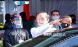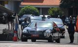 Presiden Joko Widodo berada di dalam mobil kepresidenan meninggalkan Gedung Negara Grahadi, Surabaya, Jawa Timur, Kamis (25/6/2020). Kunjungan kerja tersebut dalam rangka meninjau posko penanganan dan penanggulangan pandemi COVID-19 di Jawa Timur. ANTARA FOTO/Zabur Karuru/nz (FOTO : Antara/Zabur Karuru)