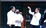 Presiden Joko Widodo (kiri) mendengarkan paparan Menteri Pariwisata dan Ekonomi Kreatif Whisnutama (kanan) saat mengunjungi lokasi wisata dengan konsep (FOTO : BUDI CANDRA SETYA/ANTARA FOTO)