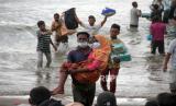 REPUBLIKA.CO.ID, ACEH UTARA -- Warga mengevakuasi secara paksa pengungsi etnis Rohingya dari kapal di pesisir pantai Lancok, Kecamatan Syantalira Bayu, Aceh Utara, Aceh, Kamis (25/6).
