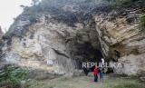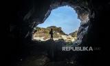 Wisatawan menikmati keindahan alam Goa Pocong, Klapanunggal, Bogor, Jawa Barat, Kamis (25/6/2020). Goa alam tersebut selain menawarkan keindahan alam juga menjadi salah satu tempat olahraga panjat tebing bagi pegiat olahraga ekstrem. (FOTO : ANTARA/Yulius Satria Wijaya)