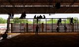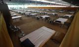 Relawan menyiapkan fasilitas yang dapat menampung lebih dari sepuluh ribu pasien COVID-19 di kompleks Radha Soami Satsang Beas di daerah Chattarpur, New Delhi, India, Rabu (24/6). Pemerintah India menyediakan tempat pasien COVID-19 di kawasan tersebut akibat minimnya fasilitas rawat guna menampung pasien yang terinveksi virus corona. India adalah negara keempat yang paling terpukul oleh pandemi di dunia setelah AS, Rusia dan Brasil. (FOTO : AP / Manish Swarup)