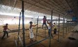 REPUBLIKA.CO.ID, NEW DELHI -- Relawan menyiapkan fasilitas kesehatan yang dapat menampung lebih dari sepuluh ribu pasien COVID-19 di kompleks Radha Soami Satsang Beas di daerah Chattarpur, New Delhi, India, Rabu (24/6).