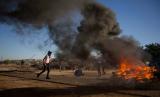 Pasukan Israel berbentrokan dengan demonstran Palestina selama protes terhadap rencana Israel untuk mencaplok bagian-bagian dari Tepi Barat dan inisiatif Timur Tengah Trump, di desa Fasayil, di Lembah Jordan, Rabu, 24 Juni 2020. (FOTO : AP / Majdi Mohammed)
