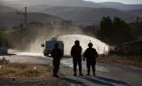 Pasukan Israeli bentrok dengan para demonstran Palestina dalam sebuah protes menentang rencana Israel untuk mencaplok bagian-bagian dari Tepi Barat dan inisiatif mideast Trump, di desa Fasayil, di Lembah Jordan, Rabu, 24 Juni 2020. (FOTO : AP /Majdi Mohammed)