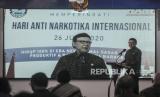 Kepala BNN Komjen Pol Heru Winarko memberikan sambutan saat peringatan Hari Anti Narkoba Internasional di Kantor BNN, Jakarta, Jumat (26/6). Peringatan Hari Anti Narkoba Internasional itu bertajuk Hidup 100 persen di Era New Normal, Sadar Sehat, Produktif Tanpa Narkoba. (FOTO : Republika/Putra M. Akbar)