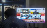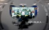 Wakil Presiden Ma'ruf Amin menghadiri peringatan Hari Anti Narkoba Internasional secara virtual yang diselenggarakan di Kantor BNN, Jakarta, Jumat (26/6). Peringatan Hari Anti Narkoba Internasional itu bertajuk Hidup 100 persen di Era New Normal, Sadar Sehat, Produktif Tanpa Narkoba. (FOTO : Republika/Putra M. Akbar)