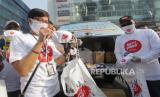 REPUBLIKA.CO.ID, JAKARTA -- Sejumlah pegawai KPK membagikan masker bertuliskan Anti Virus Korupsi secara gratis ke pengendara yang melintas di Jalan Sudirman, Jakarta, Jumat (26/6/2020). Pembagian masker tersebut dilakukan sebagai bagian dari upaya terus mengkampanyekan nilai-nilai antikorupsi dan mencegah penularan COVID-19.