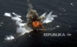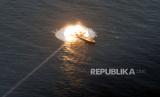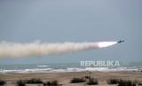 REPUBLIKA.CO.ID, TELUK OMAN -- Iran menyatakan telah berhasil mengenbangkan rudal jenis baru dalam latihan militer beberapa waktu lalu. Foto-foto yang dirilis angkatan bersenjata Iran menunjukkan rudal yang ditembakkan di darat menghantam kapal di laut yang menjadi sasaran.