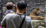Pengunjung melintas di depan kandang satwa saat hari pertama pembukaan kembali Bandung Zoological Garden, Kota Bandung, Sabtu, (27/6). Bandung Zoological Garden atau Kebun Binatang Bandung kembali dibuka pada masa adaptasi kebiasaan baru (AKB) dengan menerapkan protokol kesehatan serta membatasi jumlah pengunjung menjadi 30 persen dari kapasitas. Foto: Abdan Syakura/Republika (FOTO : ABDAN SYAKURA/REPUBLIKA)