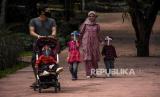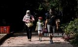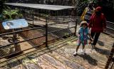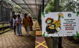 Pengunjung berjalan di area taman saat hari pertama pembukaan kembali Bandung Zoological Garden, Kota Bandung, Sabtu, (27/6). Bandung Zoological Garden atau Kebun Binatang Bandung kembali dibuka pada masa adaptasi kebiasaan baru (AKB) dengan menerapkan protokol kesehatan serta membatasi jumlah pengunjung menjadi 30 persen dari kapasitas. Foto: Abdan Syakura/Republika (FOTO : ABDAN SYAKURA/REPUBLIKA)