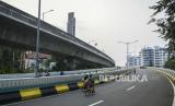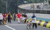 Warga berolahraga saat Hari Bebas Kendaraan Bermotor (HBKB) atau Car Free Day (CFD) di Jalan Layang Non Tol Antarasari, Jakarta, Minggu (28/6/2020). Pemprov DKI Jakarta menggelar HBKB atau CFD di 32 lokasi baru untuk menggantikan HBKB yang ditiadakan di Jalan Sudirman-Thamrin dengan alasan menghindari terjadinya kerumunan warga untuk mencegah penyebaran COVID-19. ANTARA FOTO/Galih Pradipta/foc. (FOTO : Antara/Galih Pradipta)