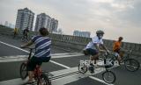 REPUBLIKA.CO.ID, JAKARTA -- Warga berolahraga saat Hari Bebas Kendaraan Bermotor (HBKB) atau Car Free Day (CFD) di Jalan Layang Non Tol Antarasari, Jakarta, Minggu (28/6/2020).