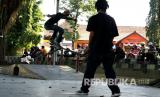 REPUBLIKA.CO.ID, YOGYAKARTA -- Remaja bermain papan luncur di wahana skateborad gratis di Lapangan Denggung, Sleman, Yogyakarta, Ahad (28/6).